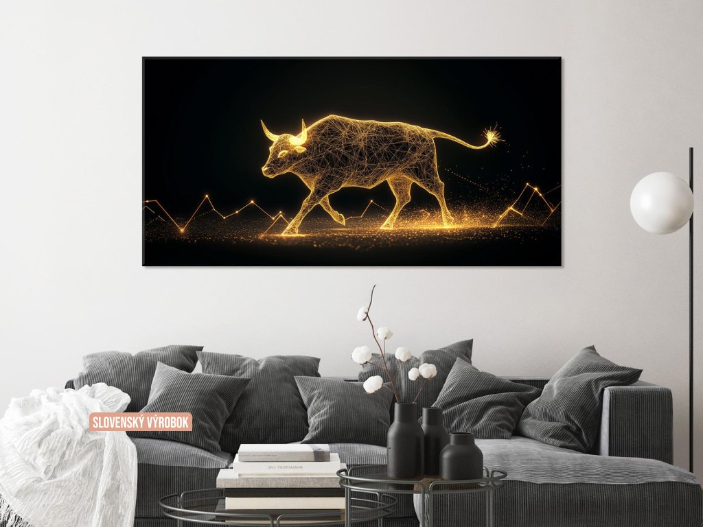 Tento obraz zobrazuje silu a odhodlanie v podobe žiariaceho býka vytvoreného z jemných digitálnych čiar. Pozadie tvorí tmavý priestor so svetelnými krivkami, čo evokuje dynamiku jeho pohybu. Celkový vizuál spája moderné technológie so symbolikou rastu a moci.