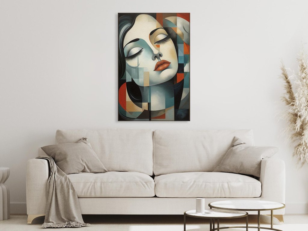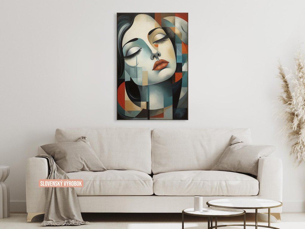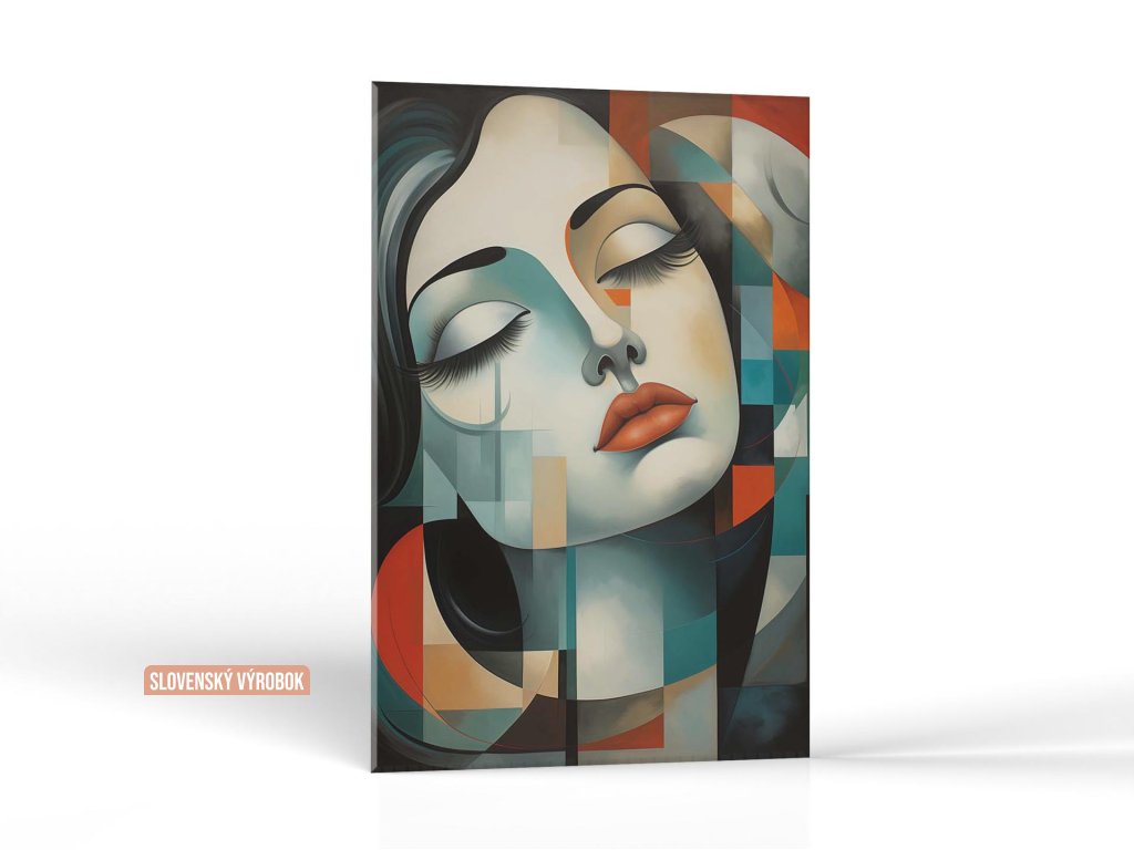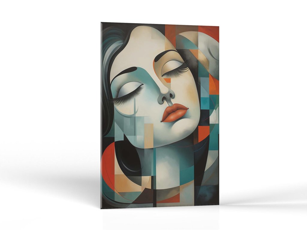 Toto umenie zachytáva ženskú tvár v abstraktnom vyjadrení, kde geometrické tvary a výrazné farby vytvárajú dojem rozkladanej reality. Tvár je zobrazená s jemnými detailami, ako sú oči a pery, ktoré kontrastujú s odvážnymi líniami a blokmi farieb rozloženými po celej kompozícii. Dynamické použitie farieb a tvarov prináša nový pohľad na tradičný portrét, zatiaľ čo zachováva pôvab a eleganciu subjektu.