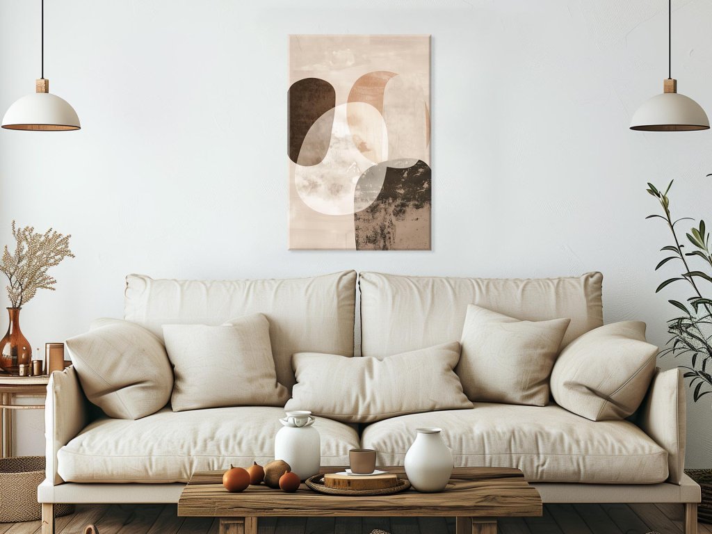 Tento obraz zachytáva elegantné prelínanie jemných pastelových odtieňov v abstraktnej kompozícii. Jemné krivky a zaoblené tvary vytvárajú pocit harmónie a pokoja. Farby sú jemné a tlmené, čo dodáva obrazu pokojný a vyvážený vzhľad.