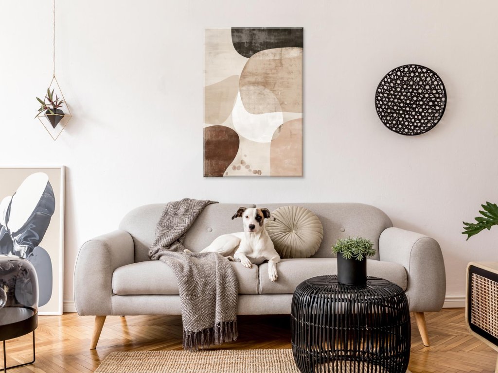 Tento obraz zobrazuje jemné prelínanie béžových a hnedých odtieňov, ktoré spolu tvoria harmonickú kompozíciu organických tvarov. Jemné farebné prechody a mäkké línie vytvárajú pocit pokoja a rovnováhy. Obraz je vizuálne príťažlivý svojou jednoduchosťou a sofistikovanou farebnou paletou, ktorá navodzuje príjemnú atmosféru.