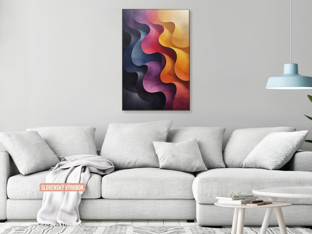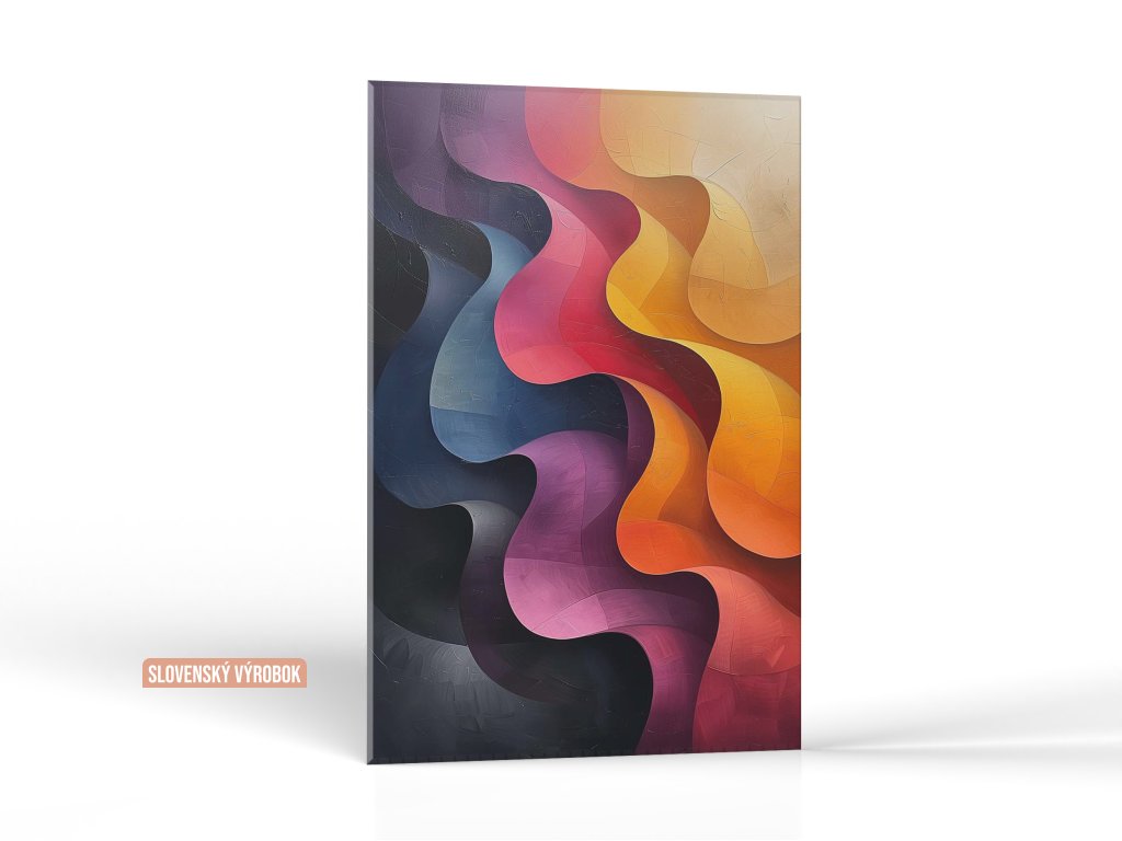 Farebné vlny v plastickom zobrazení pôsobia priam hmatateľne. V hladkých farebných prechodoch od teplých žltých a červených k chladnejším fialovým a modrým odtieňom. Texturované detaily vytvárajú dojem hĺbky a dimenzie v každej vrstve. Dynamická kompozícia evokuje pohyb a rytmus, čo poskytuje divákovi silný vizuálny zážitok.