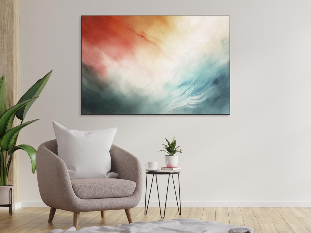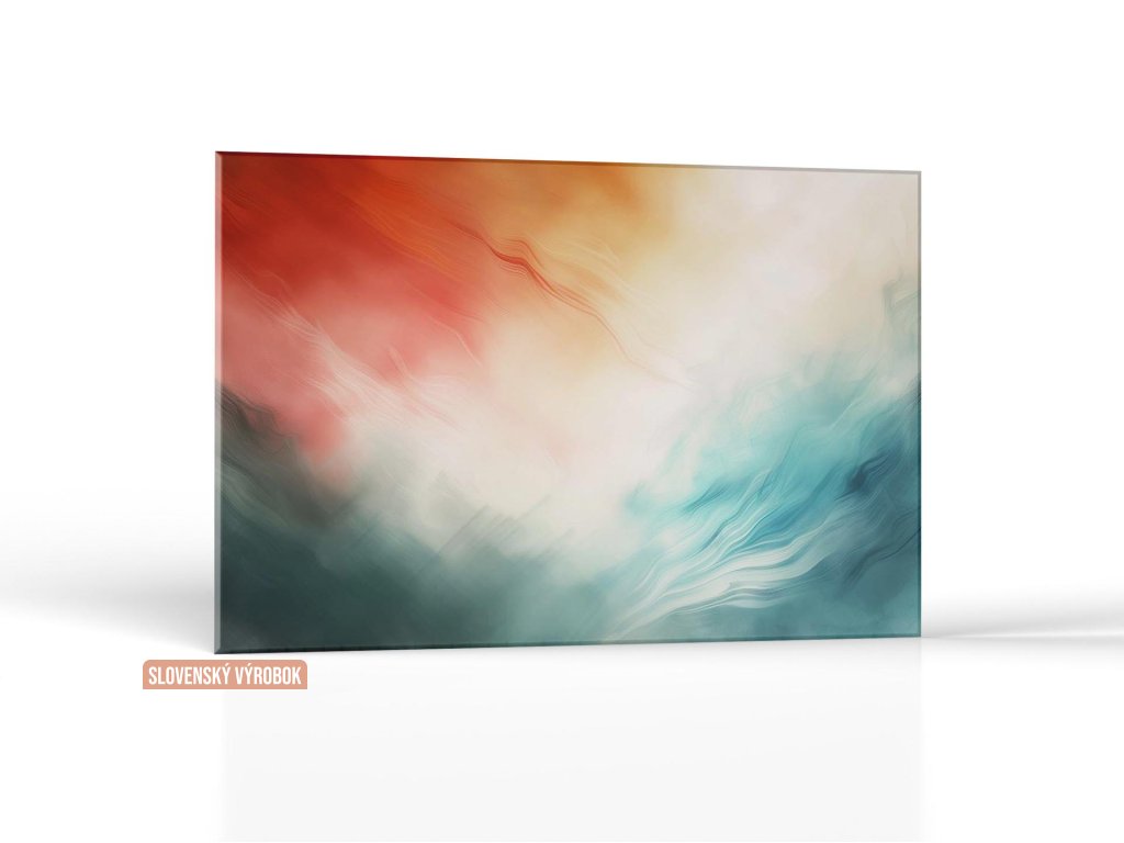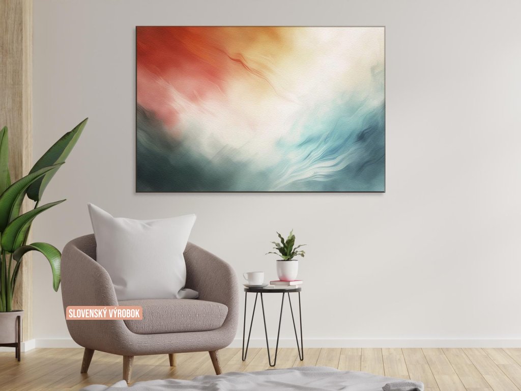 Tento obraz, nazvaný "Plameň a Voda", je abstraktnou interpretáciou neustálej súťaže a symbiózy dvoch základných prvkov prírody – ohňa a vody. Mäkké, prúdiace čiary v teplých odtieňoch červenej a oranžovej farby sú v kontraste s chladnými tónmi modrej a tyrkysovej, čo spolu vytvára dojem dramatického, ale harmonického tanečného vystúpenia. Obraz vyvoláva pocit silného prúdenia energie a zmiešaných emócií, pričom divák je zatiahnutý do vnútorného dialógu medzi dvoma kontrastnými silami, ktoré sú základom života a prírodných cyklov.