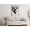Na tomto umeleckom diele vidíme abstraktný portrét ženy, ktorý je akoby zachytený medzi realitou a snom. Obraz je prevedený v monochromatických tónoch, pričom hlavnou farbou je škála sivej. Detaily tváre sú zvýraznené tak, aby oči boli stredobodom pozornosti, čo dodáva hĺbku a intenzitu pohľadu zobrazeného subjektu. Okolie tváre je rozptýlené a rozfúkané, akoby v každom šteteče bol ukrytý príbeh, čo vytvára pocit pohybu a efemerality. Tento obraz je pravdepodobne výsledkom kombinácie tradičných kresliarskych techník a digitálneho umenia, čo mu dodáva moderný a dynamický nádych.