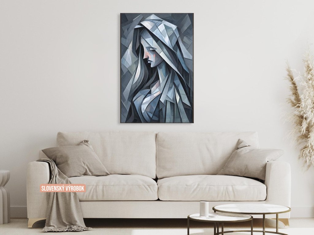 Portrét ženy v abstraktnom, geometrickom štýle.