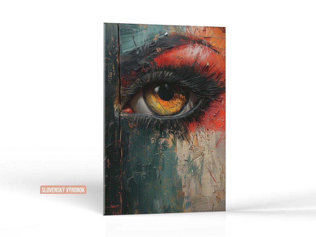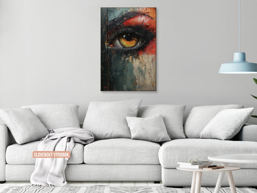 Tento výrazný obraz predstavuje ľudské oko obklopené dynamickou kompozíciou škrabancov a farebných prskancov, ktoré vytvárajú ilúziu pohybu a energie. Tmavé odtiene kontrastujú s jasnými farbami a vytvárajú dojem hlbokej emocionálnej výpovede. Obraz spája prvky realismu a abstrakcie, čím vzniká silný vizuálny dojem, ktorý pritahuje a udržuje pozornosť diváka.