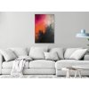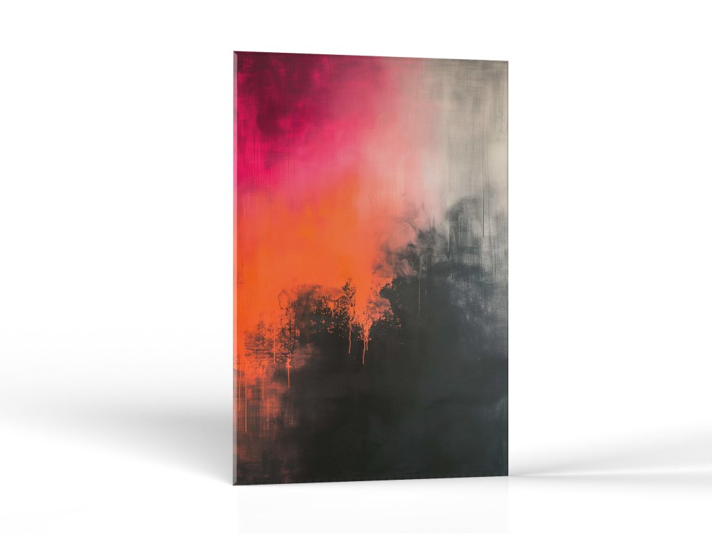Tento obraz predstavuje abstraktnú kompozíciu, v ktorej žiarivé červené a oranžové odtiene prechádzajú do hlbokých čiernych tónov, vytvárajúc pocit západu slnka nad tmavým morom alebo horizontom. Dynamické ťahy štetca a stekajúce farby dodávajú práci energiu a hĺbku, zatiaľ čo zmiešané textúry a prechody farieb evokujú pocit pohybu a zmeny.