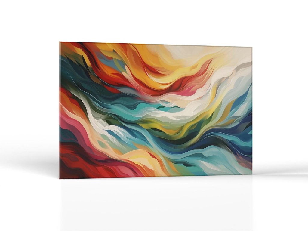 Na obraze "Tanec farieb" sa pred očami diváka odohráva živý pohyb abstraktných vlnových foriem. Teplé odtiene žltej, oranžovej a červenej farby prechádzajú do chladných tónov modrej a zelenej, čo vytvára dojem tepla a chladu, svetla a tieňa. Dynamické, no harmonické prúdenie farieb pôsobí ako zobrazenie hudby alebo emotívneho výrazu, v ktorom každý ťah štetca prispieva k celkovej symfónii vizuálnej krásy.