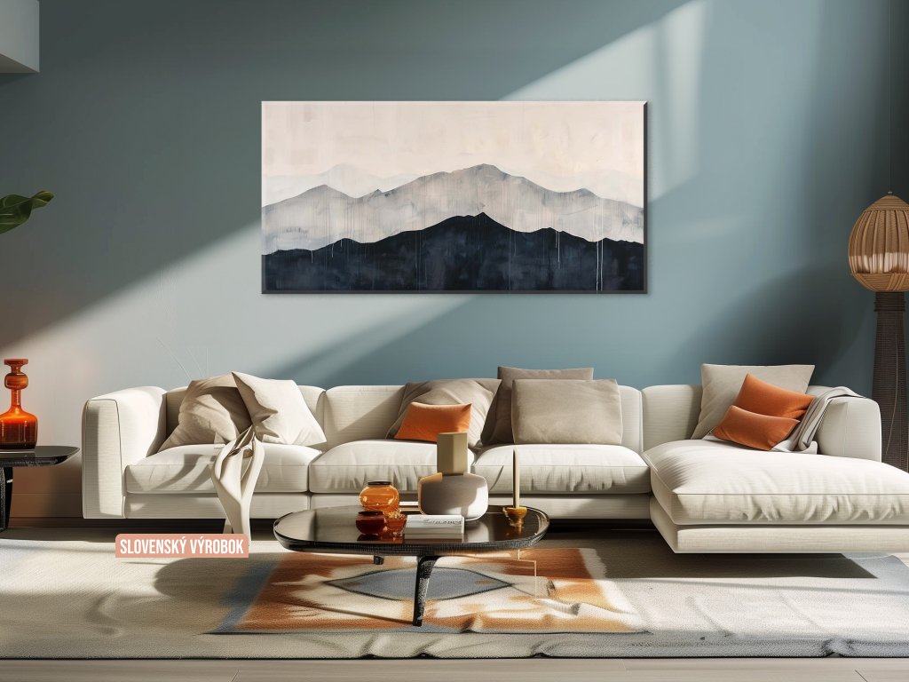 Obraz zachytáva minimalistický pohľad na horskú krajinu, kde jemné línie a tlmené farby vytvárajú pokojný a meditativny dojem. Silueta hôr je vykreslená jednoduchými, ale účinnými ťahmi štetca, ktoré zdôrazňujú ich majestátnosť a tajomnosť. Tento obraz vyjadruje krásu prírody prostredníctvom minimalistického umenia, ktoré pozýva diváka k zamysleniu a vnútornému pokoju.