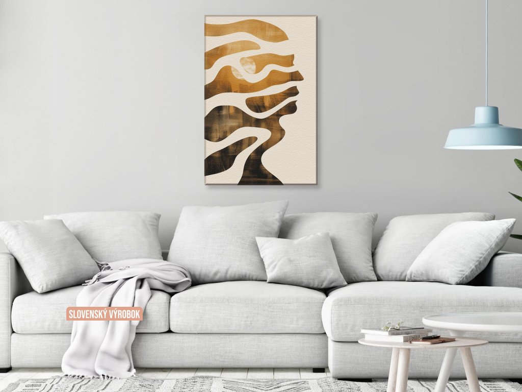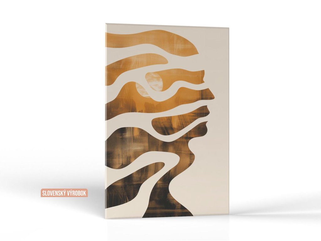 Tento obraz je zobrazením púštnych dún, ktoré sú vyjadrené prostredníctvom elegantných, plynulých bielych a hnedých línií, ktoré sa vinú a pretínajú, vytvárajúc dynamický a zároveň harmonický vzor. Tmavohnedé a okrové odtiene spolu s bielymi prvkami evokujú pocit horúceho piesku a nekonečnej púšte. V hornej časti obrazu je kruhový motív, ktorý môže symbolizovať slnko alebo mesiac, a dodáva dielu atmosféru a hĺbku. Súčasťou obrazu sú tiež naznačené kontúry skalného terénu, čo umocňuje pocit divokej a nedotknutej prírody.