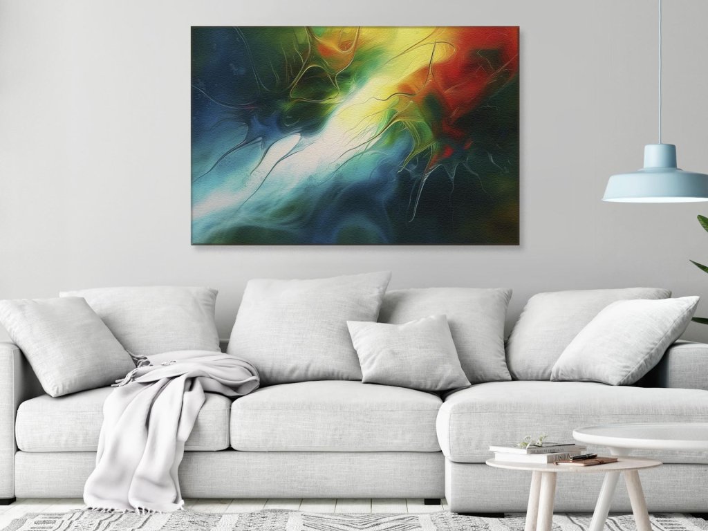 Tento obraz je explóziou života a pohybu. Farby sa tu preplietajú v organických tvaroch a liniách, pripomínajúc prúdenie rieky či dych zeme. Zelená evokuje rastlinstvo, modrá vodu, žltá slnko a červená oheň – všetky živly splynuté do jedného celku, zachytené v jedinom okamihu neustálej zmeny.