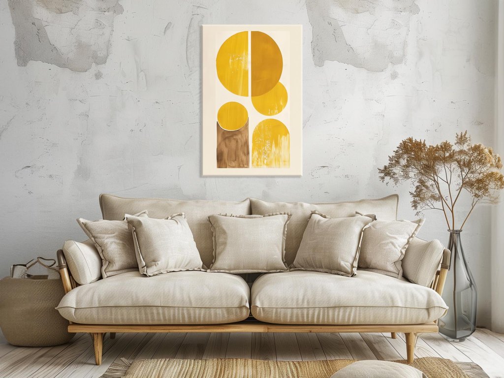 Tento obraz predstavuje kolekciu geometrických tvarov v teplých zlatých odtieňoch, ktoré vytvárajú pocit hrejivosti a harmónie. Dielo zaujme eleganciou a jemnosťou, čím krásne doplní akýkoľvek interiér.