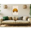 Tento obraz predstavuje abstraktnú krajinu s polkruhom na hornej časti, ktorý pripomína západ slnka, nadradený nad troma hnedými oblúkmi, symbolizujúcimi zem. Je to jednoduché, ale výrazné umelecké dielo, ktoré kombinuje geometrické prvky s teplými zemitými farbami a dotykmi textúry, čo vyvoláva pocit pokoja a harmónie.