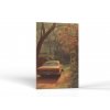 Oranžové auto klasického modelu stojí na ceste pokrytej lístím pod krytom oranžovo kvitnúcich stromov. Dom v pozadí je zahalený mäkkým svetlom, ktoré prechádza cez stromy. Scéna je zosobnením pokojného jesenného rána.