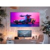 Tento obraz zobrazuje legendárny automobil DeLorean DMC-12 s otvárajúcimi sa krídlovými dverami, zvýraznený futuristickým neónovým osvetlením. Auto, ktoré sa preslávilo filmovou trilógiou "Návrat do budúcnosti", je nasvietené v kontrastných tónoch fialovej a ružovej, čím dodáva celej scéne dynamiku a moderný nádych. Tento výnimočný automobil pôsobí ako symbol minulosti aj budúcnosti, plný elegancie a technologického pokroku.