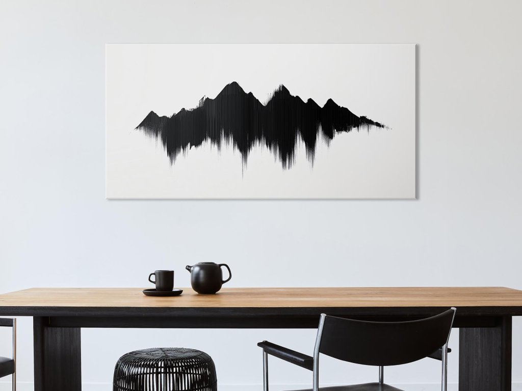 Tento obraz spája prírodný motív horského hrebeňa so súčasnou estetikou zvukovej vlny, čím vytvára jedinečné vizuálne prepojenie medzi prírodou a zvukom. Čierne línie klesajúce smerom nadol pripomínajú ozvenu ticha či pohyb vzduchu v dolinách. V celej svojej jednoduchosti obraz evokuje pokoj, hĺbku a introspektívnu atmosféru.