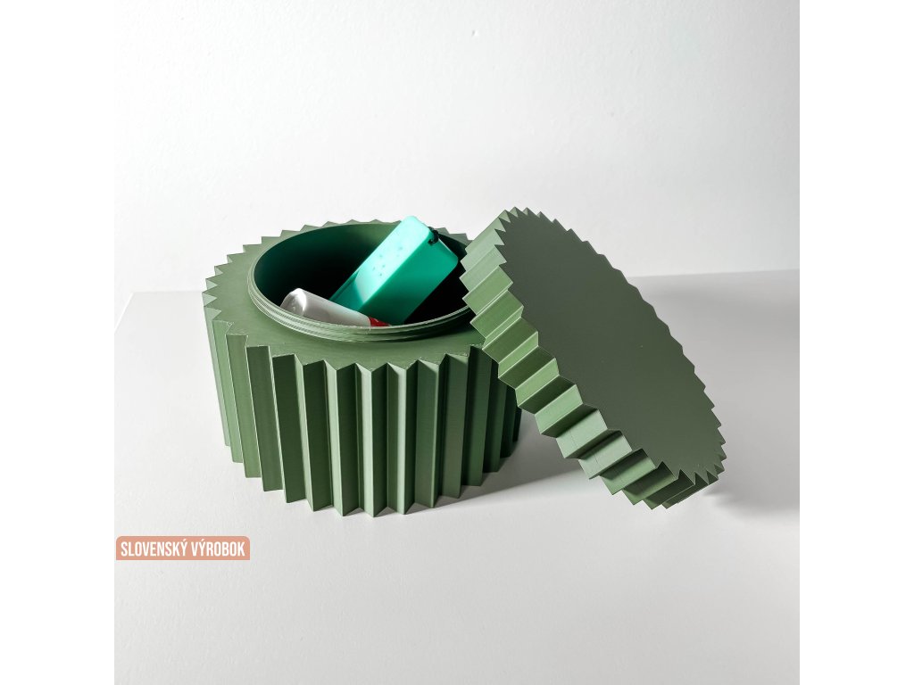 Organizer ARIS je moderný 3D tlačený organizér, ktorý sa hodí na stôl, do kúpeľne alebo do zásuvky. S jeho výrazným rebrovaným dizajnom a ekologickým materiálom PolyTerra PLA prináša štýl a poriadok do vášho domova či kancelárie. Tento organizér je ideálny na usporiadanie drobností ako kľúče, šperky, kozmetika či lieky, čo z neho robí všestranný doplnok pre každý interiér. Dostupný v rôznych farbách, ľahko zapadne do vašej kúpeľne, kuchyne alebo na pracovný stôl.