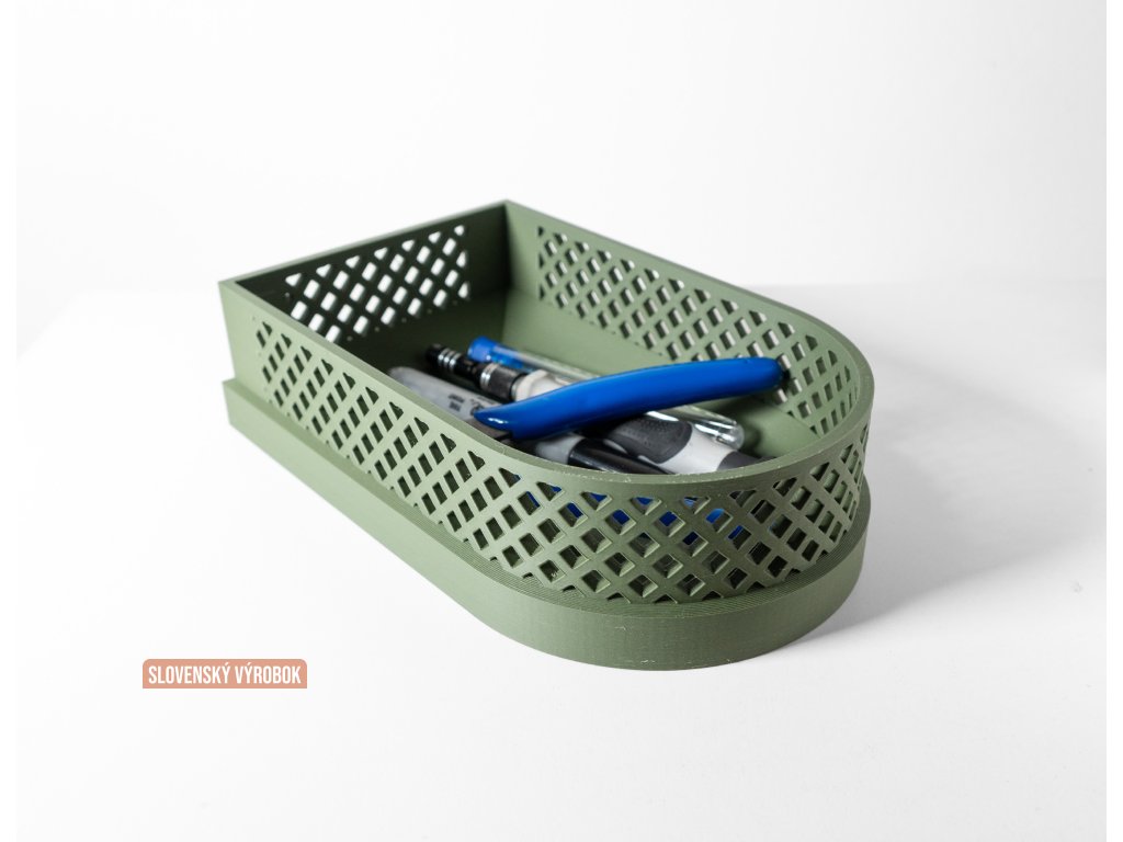 Organizer JAVI – elegantný 3D tlačený organizér na stôl s otvoreným mriežkovaným dizajnom. Ideálny na usporiadanie písacích potrieb, kľúčov alebo drobností.