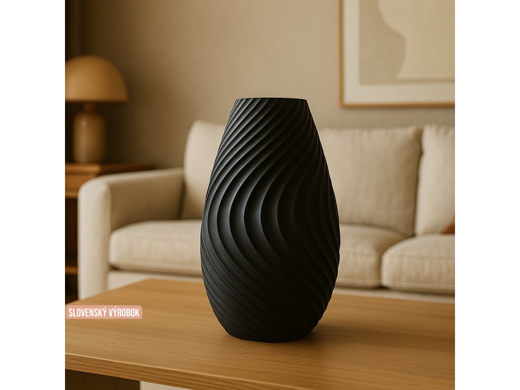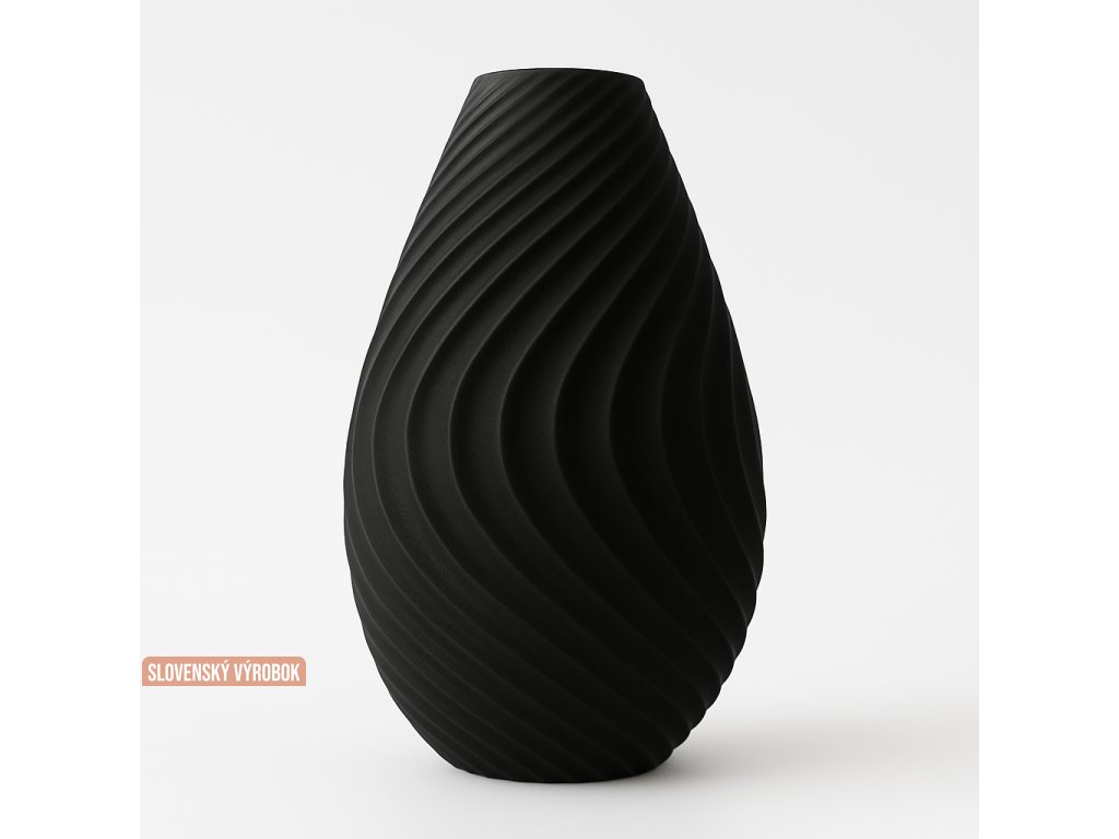 Váza Curvea Noir je stelesnením elegancie a hlbokého vizuálneho rytmu. Jej ladné, plynulé krivky evokujú pohyb vody a súčasne pôsobia stabilne a moderne. V matnom čiernom prevedení sa stáva nielen dekoráciou, ale aj výrazovým prvkom interiéru.