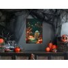 Tento obraz zachytáva príjemnú, ale záhadnú atmosféru na pláži počas Halloweenu, kde sa duch prechádza po drevenom chodníku. Svetlá v tvare tekvíc a visiacich lampiónov dotvárajú svetlo medzi palmami, zatiaľ čo netopiere prelietajú nad temnou oblohou. Scéna vyžaruje kombináciu strašidelnej a pokojnej nálady, ideálnej pre tajomné plážové večery.