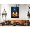 Na obraze je nočná scéna v lese, kde štyria veselí duchovia sedia okolo plápolajúceho táboráku a opekajú marshmallow. Ich svetlo sa jemne odráža na ohni, zatiaľ čo nad nimi svieti polmesiac a hviezdy žiaria na tmavej oblohe. Scéna pôsobí rozkošne a hravo, napriek strašidelnému prostrediu lesa v noci.