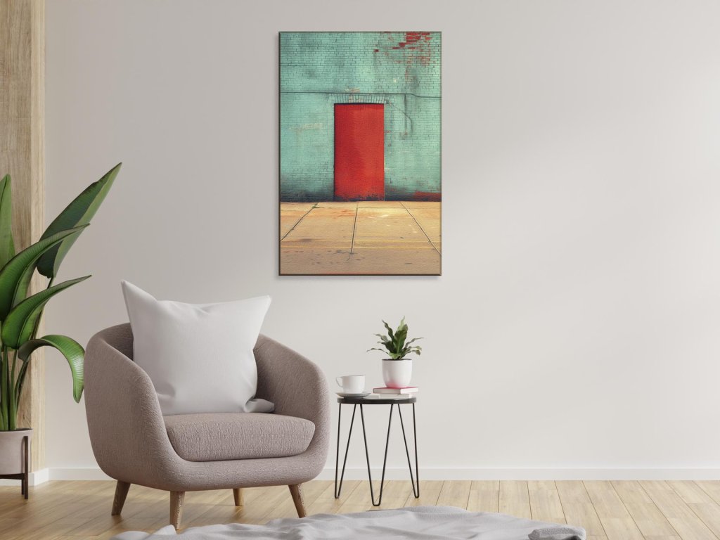 Červené dvere na tyrkysovej stene | Obrazy Vintessia