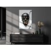 Tento obraz zobrazuje lebku vytvorenú z čierneho materiálu s výraznými zlatými prasklinami, ktoré pripomínajú techniku Kintsugi, tradičného japonského umenia opravovania prasklín zlatom. Na mramorovom podklade lebka vyniká svojou eleganciou, pričom zlaté zuby dodávajú dielu jemný, ale dramatický efekt. Motív obrazu je symbolom spojenia medzi krehkosťou a silou, pričom zlaté detaily zvýrazňujú krásu nedokonalosti.