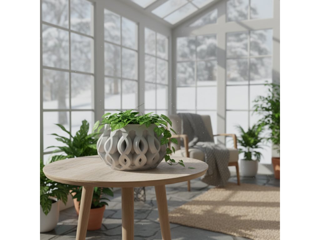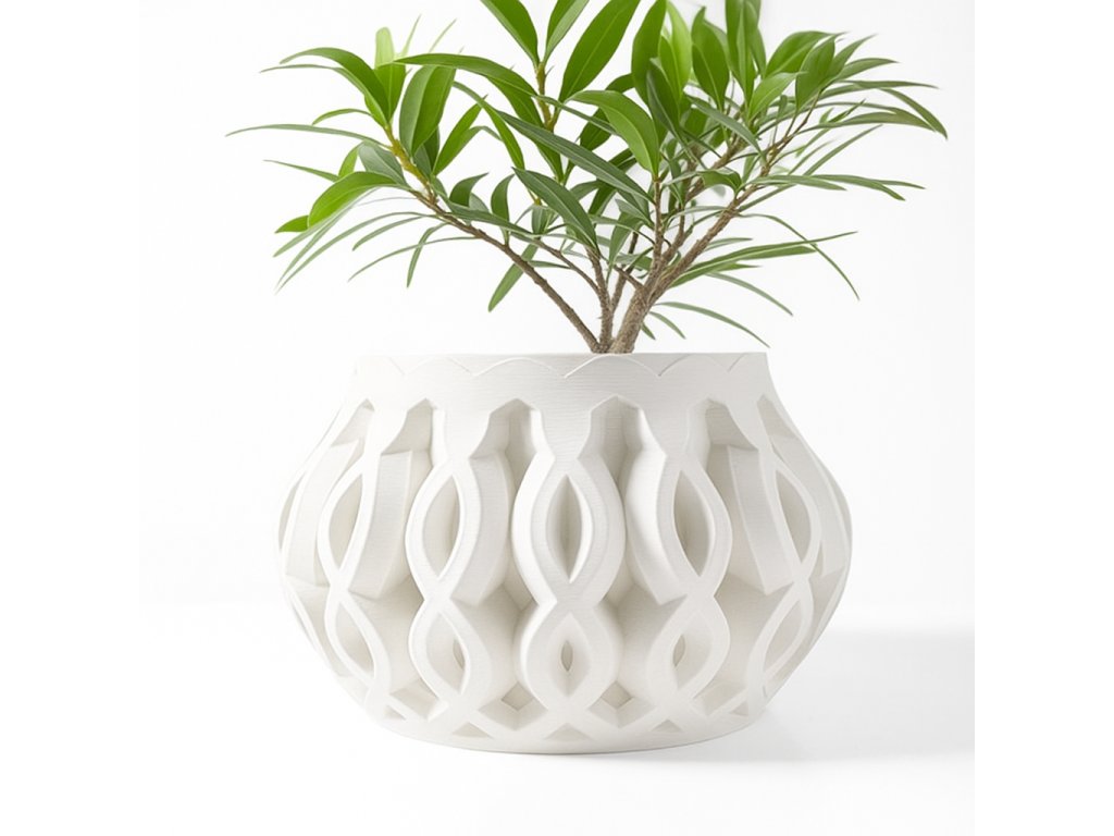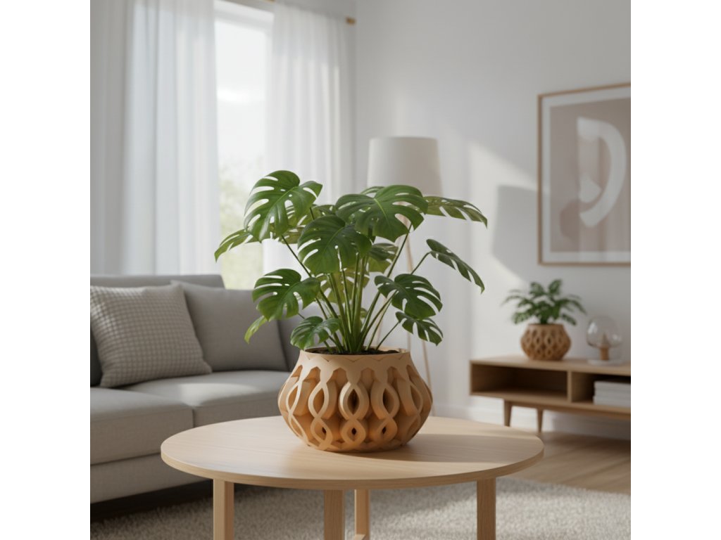 Kvetináč Cylas v sebe nesie odvážnu symetriu a umelecký výraz. Jeho tvar pripomína prepletené ornamenty, ktoré dodávajú priestoru jedinečný charakter. Tento model sa stane centrálnym bodom každej modernej alebo boho inšpirovanej miestnosti.