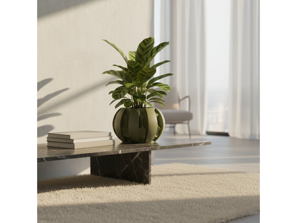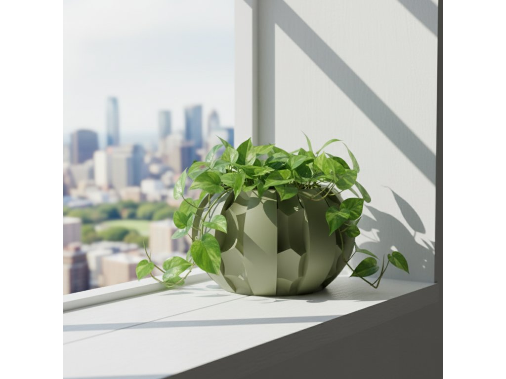 Vyrobený z PolyTerra PLA, ekologického materiálu s biologickou rozložiteľnosťou, pomocou precíznej 3D tlače priamo na Slovensku. Kvetináč je výsledkom udržateľného dizajnu a technologickej precíznosti.