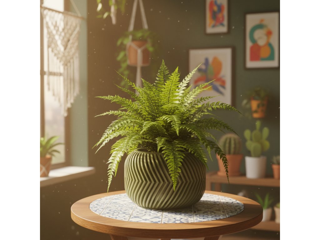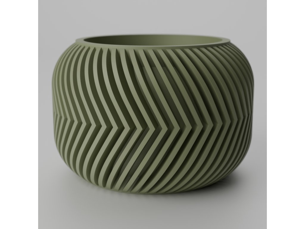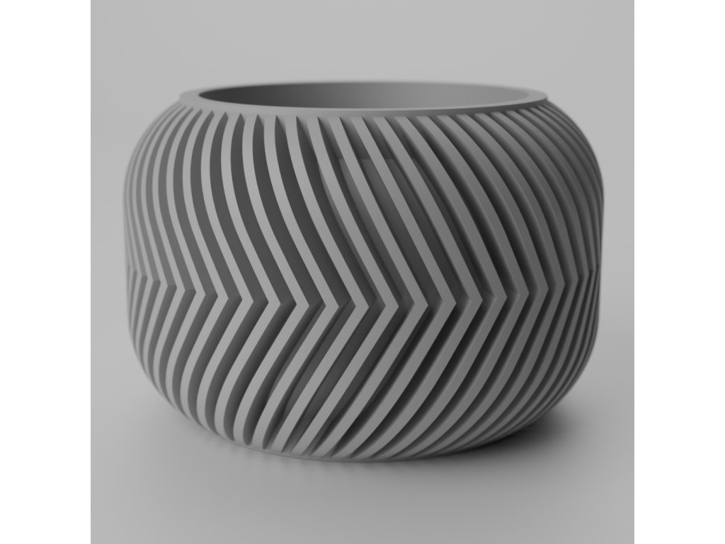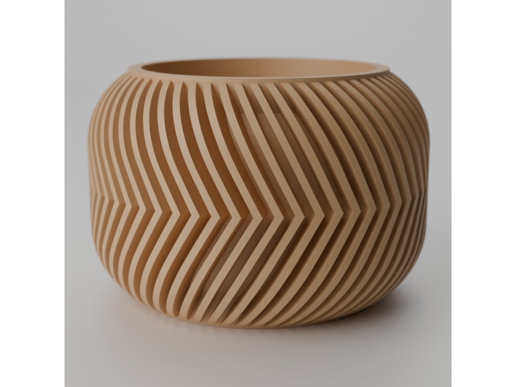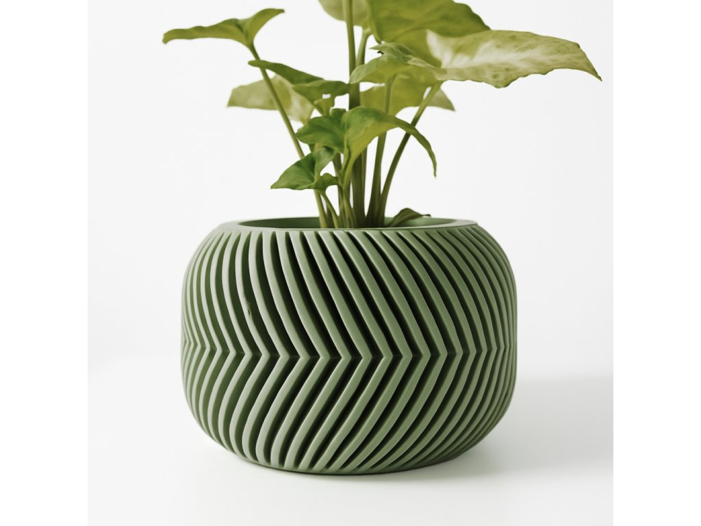 Kvetináč Evron zaujme už na prvý pohľad svojím výrazným, geometrickým vzorom, ktorý vytvára ilúziu pohybu a hĺbky. Precízne 3D tvarovanie vo forme šípových liniek dodáva celku výnimočný vizuálny rytmus a robí z neho moderný doplnok s charakterom.