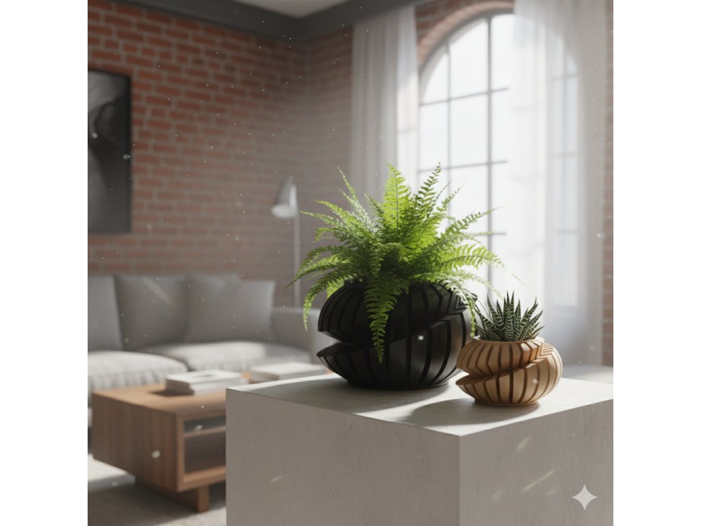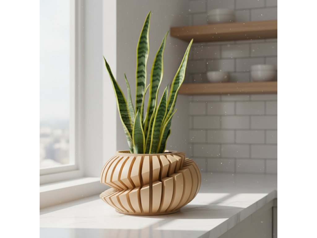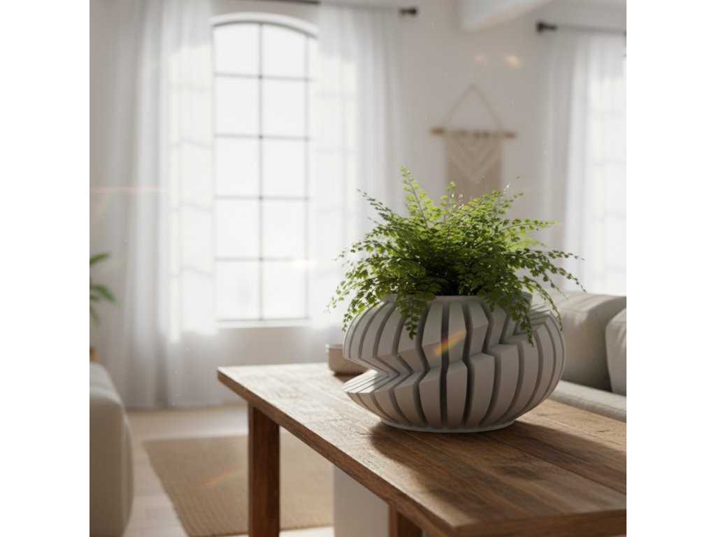 Kvetináč Luxir predstavuje dokonalý súlad medzi futuristickým dizajnom a ekologickým remeslom. Jeho jedinečne špirálovito vrstvený tvar vytvára ilúziu pohybu, ktorý púta pozornosť z každého uhla. Ideálny do moderného a industriálneho interiéru.