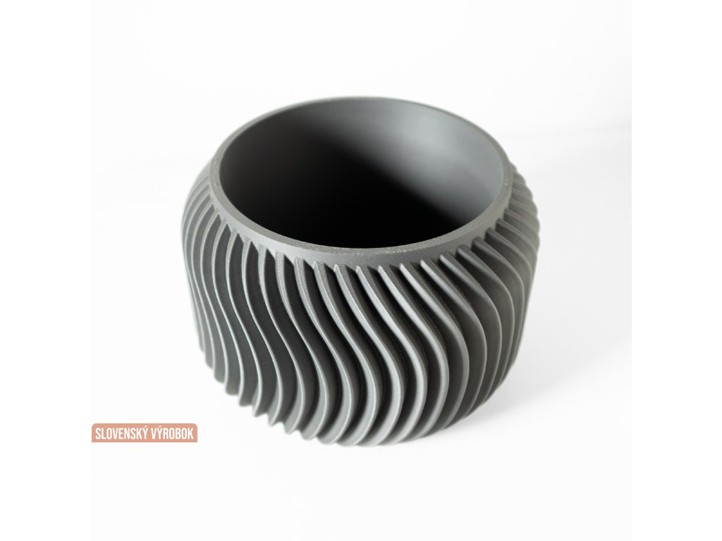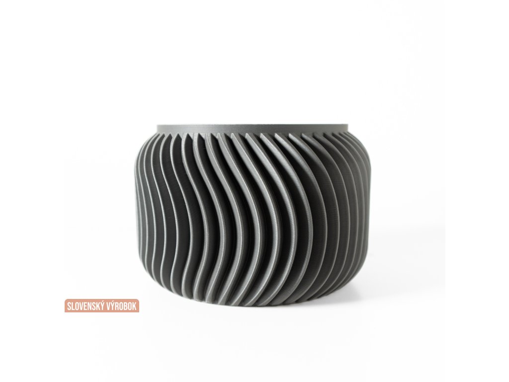 Vyrobený z ekologického materiálu PolyTerra PLA v sýtej grafitovej farbe. Vďaka 3D tlači je každý kus precízne vytvorený a individuálne kontrolovaný.