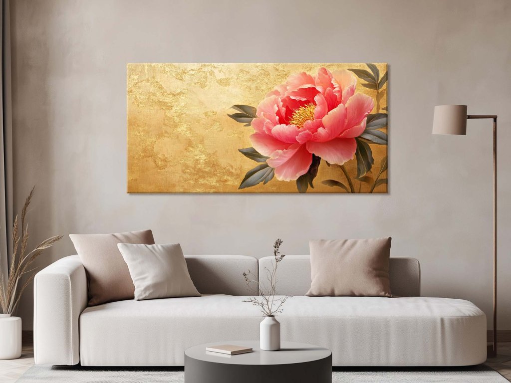 Obraz zachytáva elegantný ružový kvet na zlatom pozadí, ktoré pridáva dotyk luxusu a tepla. Kvet v plnom rozkvete dominuje obrazu svojimi žiarivými farbami. Harmónia medzi prírodou a sofistikovaným dizajnom robí tento obraz ideálnym pre milovníkov jemných detailov a krásy.