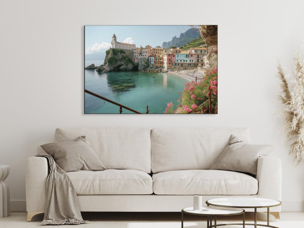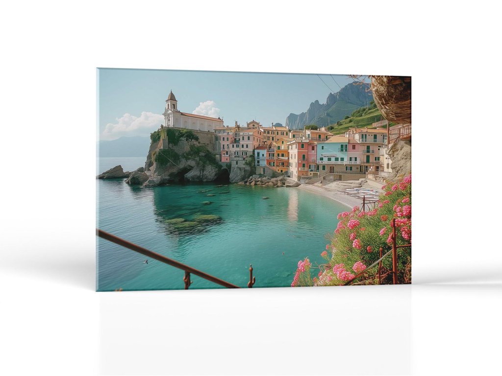 Pestré domy roztrúsené na skalnatých svahoch vedú až k čistým tyrkysovým vodám. Architektúra a prirodzená krása sa snúbia, vytvárajúc obraz dokonalého miesta na odpočinok. Pokojná atmosféra a teplé slnečné lúče dodávajú scenérii pocit pokojnej oázy.