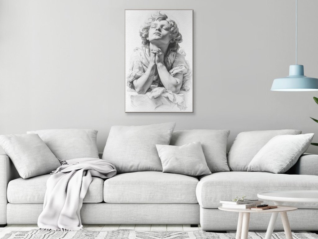Obraz zobrazuje dieťa so zatvorenými očami a rukami spätými pri prosbe alebo vzdávaní úcty. Jeho vyjadrenie je plné vnútornej sily a pokory, zatiaľ čo svetlo zdôrazňuje jemnosť jeho rysov a textúru odevu. Atmosféra obrazu je pokojná a introspektívna.