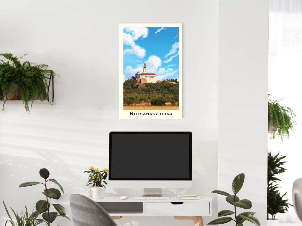 Tento obraz zachytáva majestátny Nitriansky hrad, ktorý dominuje nad zeleným kopcom, ohraničený modrou oblohou s bielymi oblakmi. Je to historická pamiatka a významný symbol mesta Nitra, ktorá spája slovenskú minulosť s prítomnosťou. Obraz pôsobí harmonicky, vďaka čomu vyzdvihuje krásu a význam tejto významnej kultúrnej pamiatky.