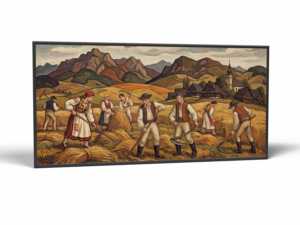 Tento obraz vyobrazuje históriu slovenského ľudu pri práci na poli. Kompozícia pôsobí harmonicky a zároveň dynamicky, ako odraz histórie.