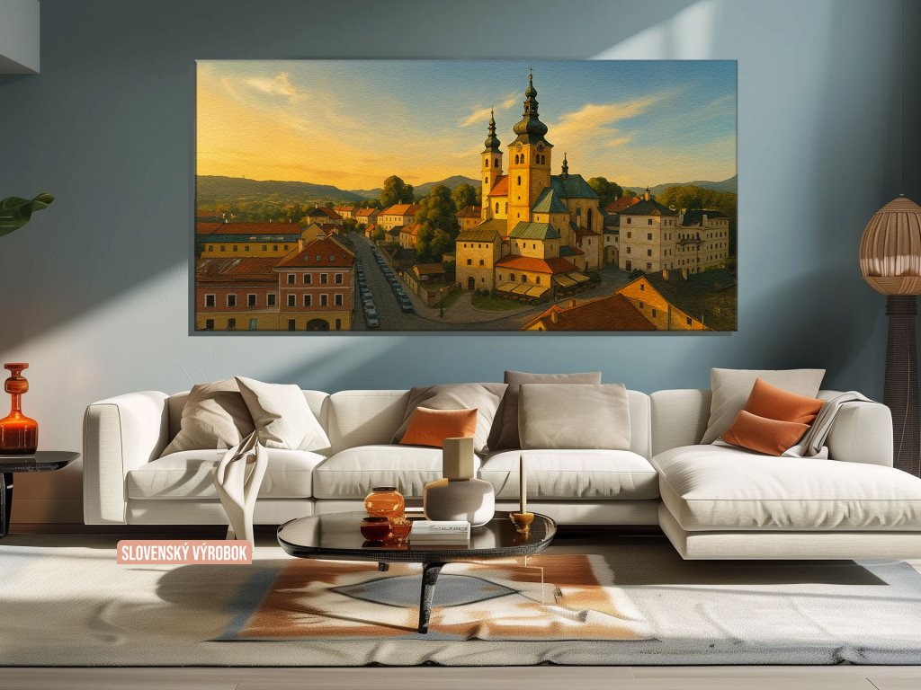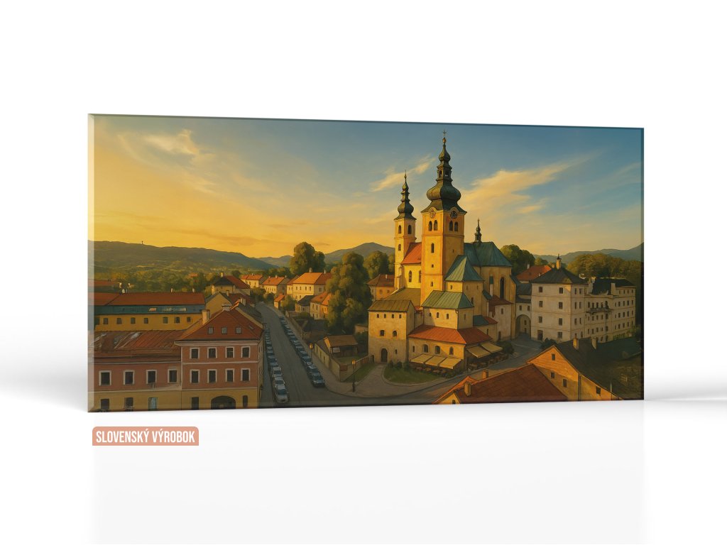 Na obraze vidíme dominantu mesta Banskej Bystrice – mestský hrad Barbakán a jeho okolie zaliate teplým západom slnka. Stredoveké stavby a úzke uličky vytvárajú malebnú atmosféru s výhľadom na pahorkatú krajinu v pozadí. Celá scéna pôsobí pokojne a harmonicky, akoby zastavená v čase.