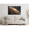 Na obraze je vidieť špirálovú galaxiu z pozície na skalnatom teréne so suchou vegetáciou, kde obloha prechádza od temného azúru po zlatisté centrum galaxie. Hviezdy a svetelné javy vytvárajú dojem hlbokého priestoru a nekonečna. Kompozícia spája pozemskú a kozmickú perspektívu, kde horizont a vesmír sa stretávajú v harmonickom celku.