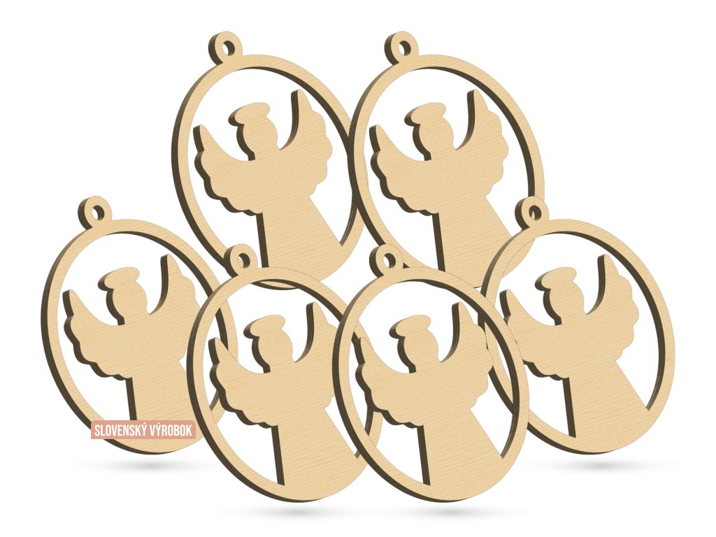 Vianočná drevená guľa s anjelom. Sada 6ks.