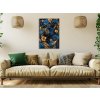 Obraz zachytáva leoparda s hypnotizujúcimi očami, skrytého v tmavomodrej a zlatej kvetinovej záhrade. Jeho pohľad vyvoláva silu a záhadnosť, zatiaľ čo kontrastné farby kvetov a zlaté akcenty vytvárajú pocit luxusu a hlbokého prostredia. Detaily kvetín a listov na pozadí sú prepracované a dodávajú celkovej kompozícii bohatú textúru a hĺbku.