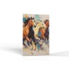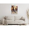 Tento dynamický obraz zobrazuje tri kone v plnom behu, každého v inej farebnej škále, čo vytvára živý a energický dojem. Kone sú zachytené v pohybe, s hrivami vejúcimi vo vetre, čo zvýrazňuje ich silu a eleganciu. Farby na obraze sú živé a kontrastné, čo pridáva obrazu na intenzite a umocňuje pocit rýchlosti a voľnosti.
